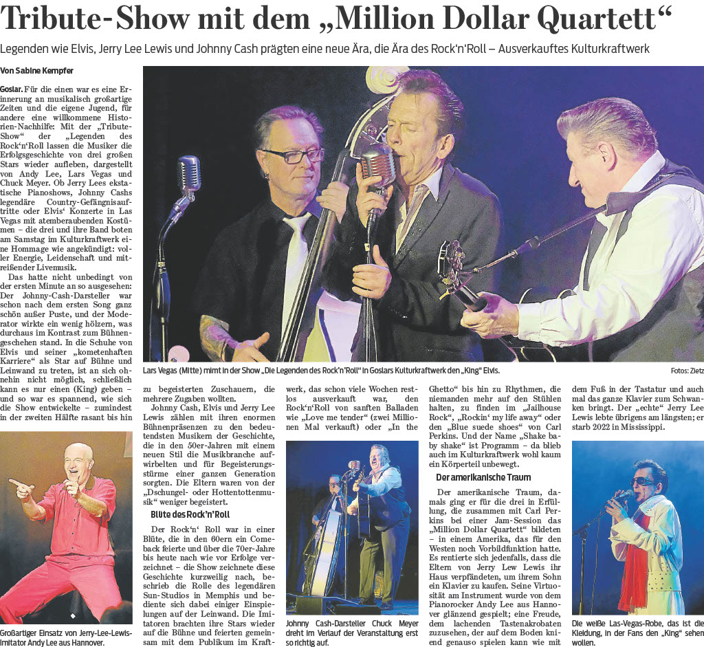 "Jerry Lee am Piano war der absolute Wahnsinn! Der Typ hat echt gerockt! Die Band klang wie aus den 50ern und die Stimmen der Künstler waren sehr original. Besser kann man das nicht machen!"